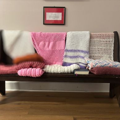 Blessed by the church, prayer shawls and baby items donated are a way to provide comfort, peace, healing, and strength to those in need. The Prayer Shawl Ministry is managed through the ECW.